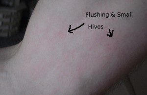 hives on arm, cholinergic urticaria arms, flushing skin