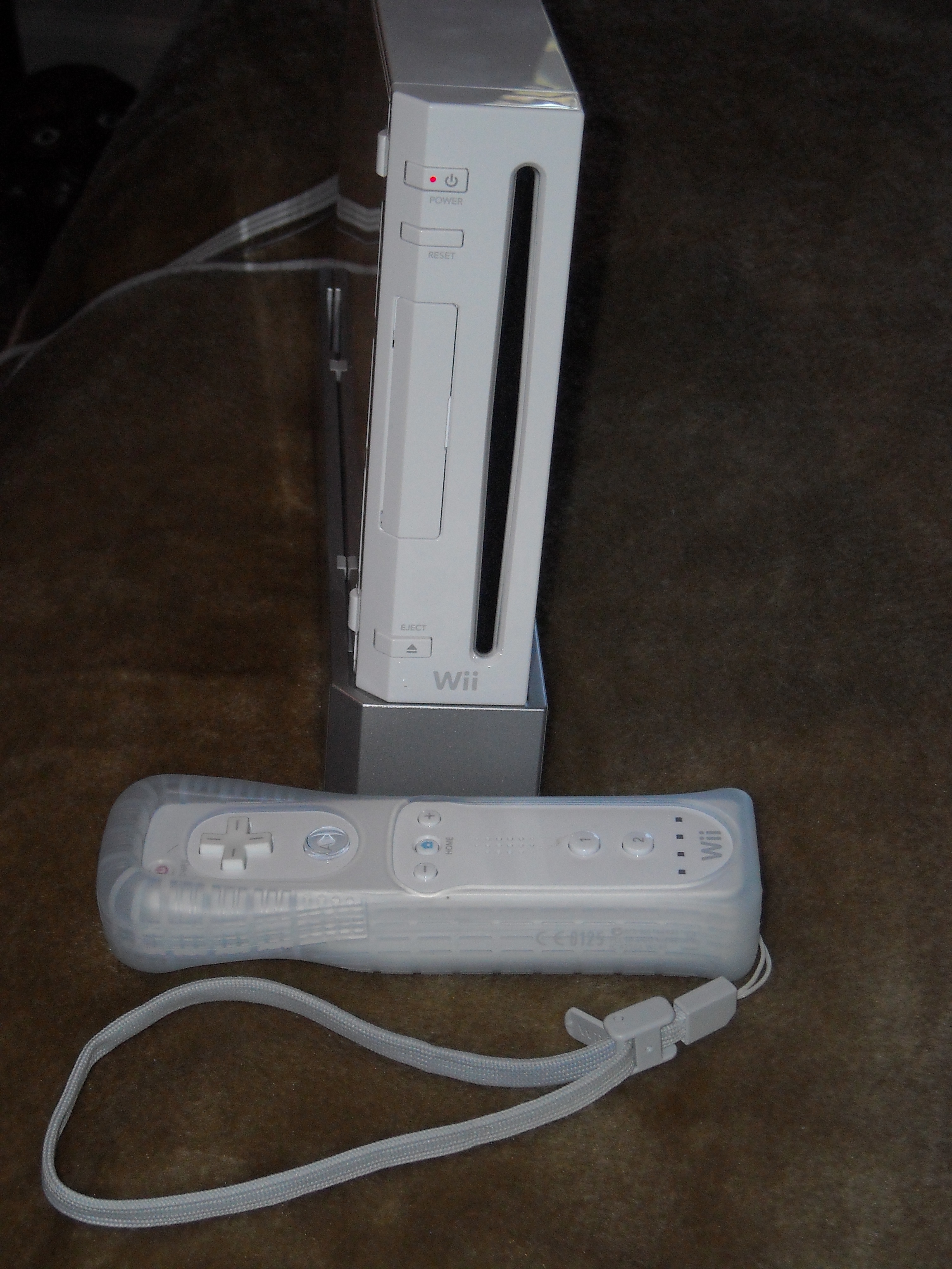 It actually feels like you are bowling. I LOVE it. Tonight we are going to play Mario Galaxy LOL I am such a nerd 🙂 The only catch to buying the Nintendo Wii is that we are not going to buy each other any Christmas gifts, Wedding anniversary gifts (which is in January), or Valentine’s Day gifts because it did set us back a little bit. Here is our little ole’ Wii (It is small…I thought it would be bigger): The thing beside the system is called the Wii mote….isn’t that clever. Say it aloud LOL!!